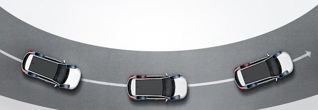 Qui sotto trovate un'immagine ufficiale Hyundai che mostra come funziona il sistema di sicurezza per la stabilità in curva della nuova Hyundai Tucson 2016 4x4, a quattro ruote motrici.